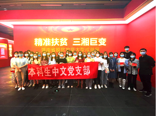 为深入贯彻落实党史学习教育的要求,引领党员同志牢记初心使命、强化理想信念,2021年5月26日,我院本科生中文党支部组织支部全体党员赴湖南省美术馆,参观“精准扶贫 三湘巨变”——湖南省脱贫攻坚大型成就展。