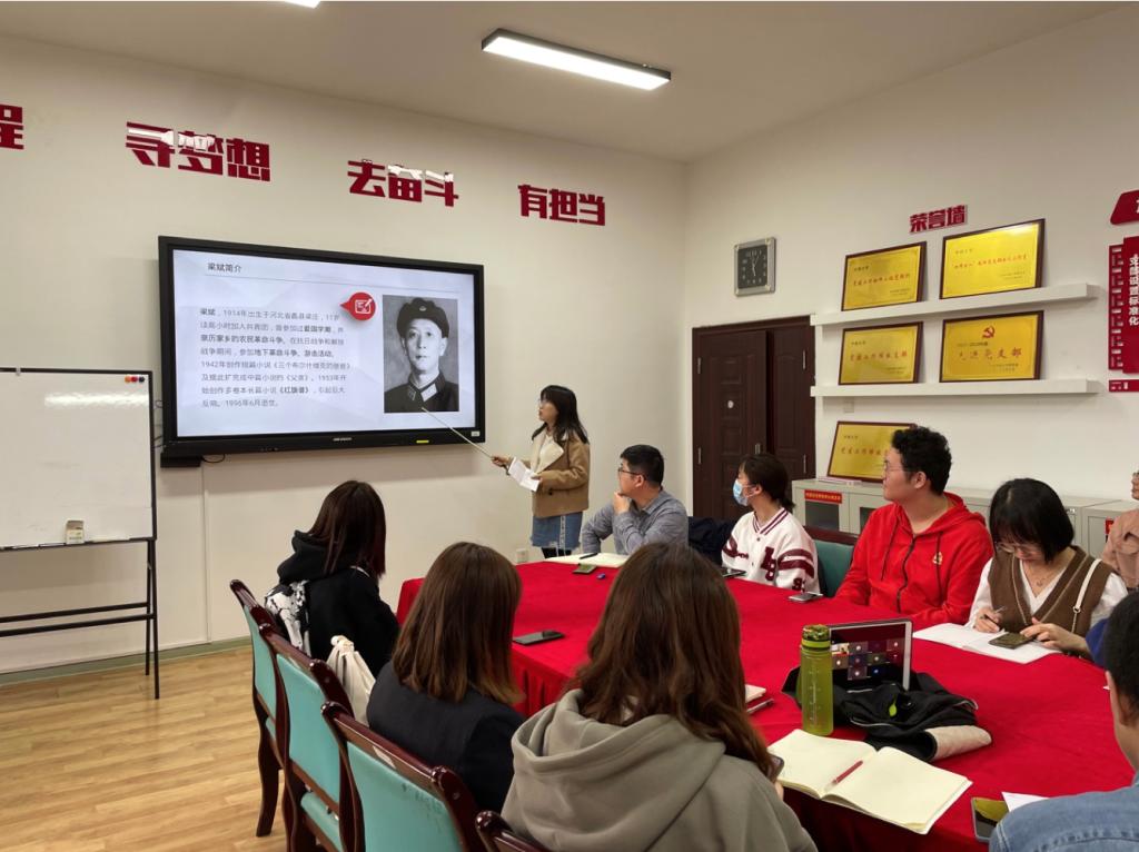 沈雪彤小组给大家分享了梁斌创作的长篇小说《红旗谱》,作品描写了冀中地区“反割头税”斗争和保定二师的学生爱国运动,真实地反映了从第一次国内革命战争前后到“九·一八”事变时期北方社会错综复杂的阶级关系。小组成员认为这部作品展现了20世纪二三十年代中国共产党领导中国人民进行革命斗争的伟大历程,对我们学党史、知党恩有重要作用。