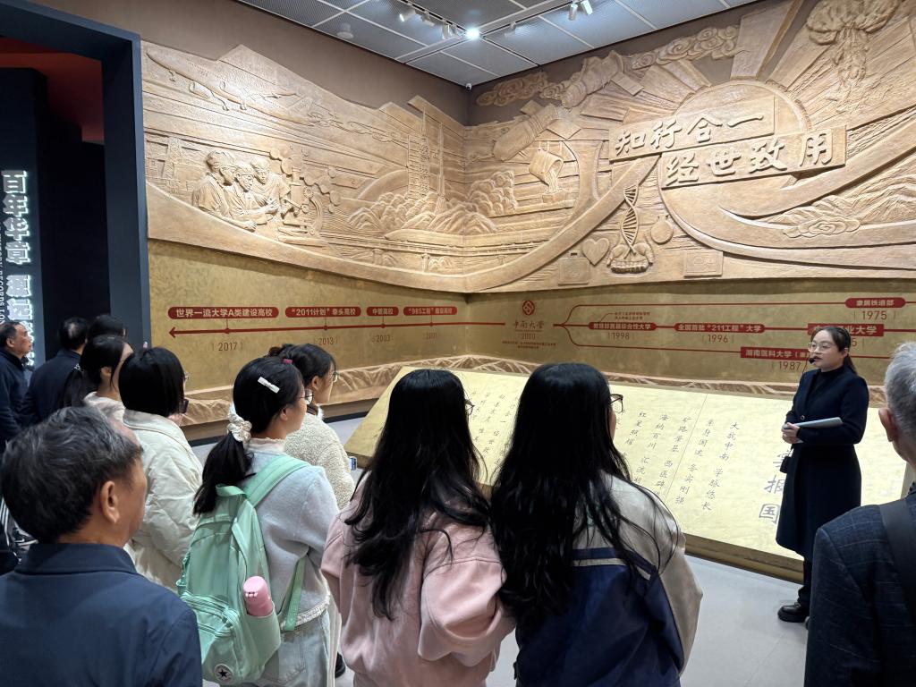 步入庄重典雅的校史馆,在讲解员的引导下,支部党员开启了追寻学校发展足迹的时光之旅。校史馆以“百年中南,知行合一,经世致用,务实报国”为主题,分为上下两篇共16个单元,通过1650幅图片、412件实物及10个实景专题,完整呈现了学校的发展脉络。