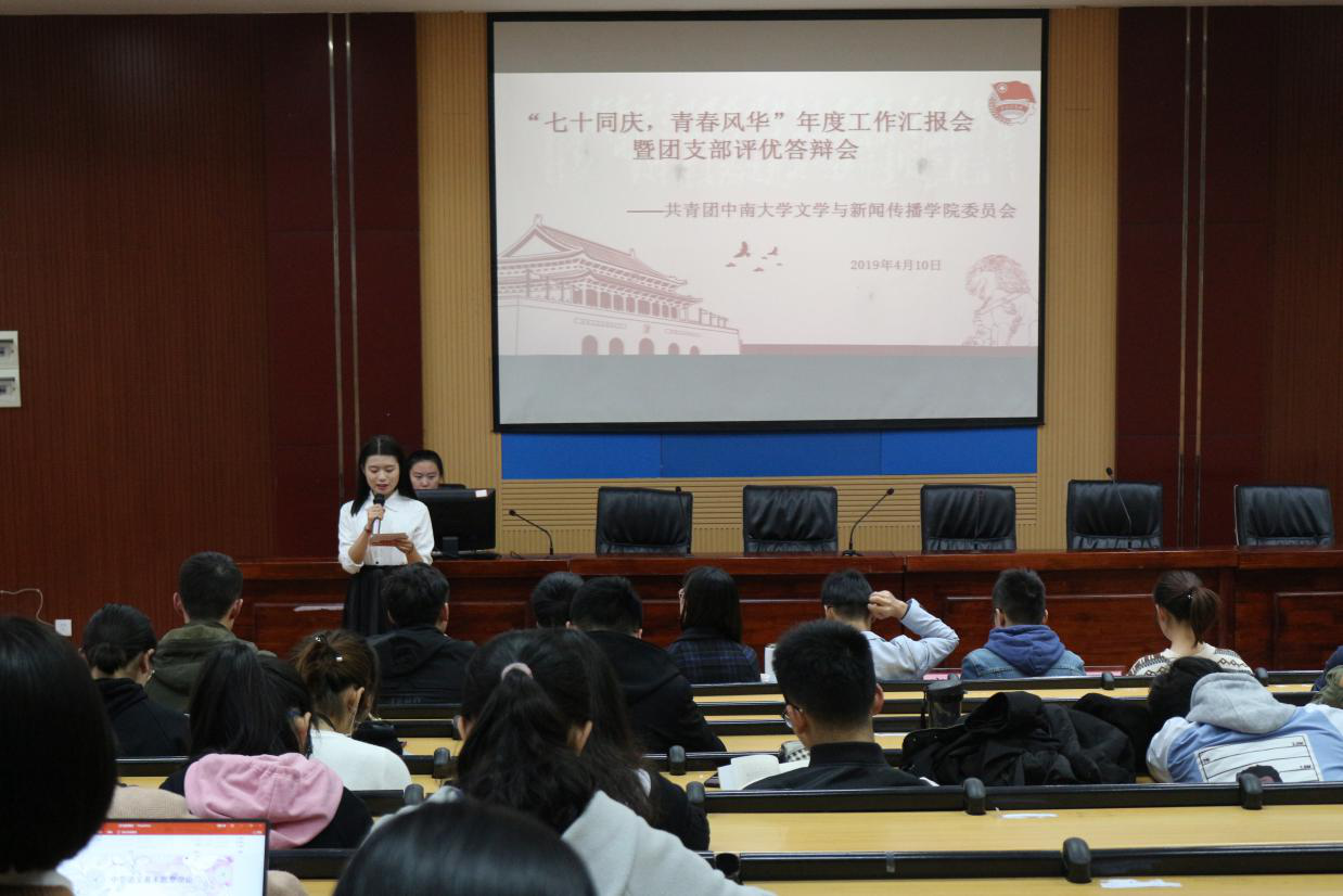 4月10日下午,文学与新闻传播学院“七十同庆,青春风华”团支部年度工作汇报会暨评优答辩会在文法楼222会议室举行,共有来自不同年级的16个团支部参与角逐。