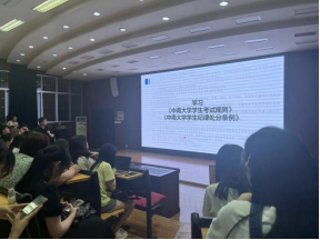 6月9日晚上21:00,文学与新闻传播学院2020级期末诚信应考专题年级大会在文法楼222召开,院团委书记、年级辅导员易孝慈老师和2020级全体本科生学参加年级大会,大会由易孝慈老师主持。