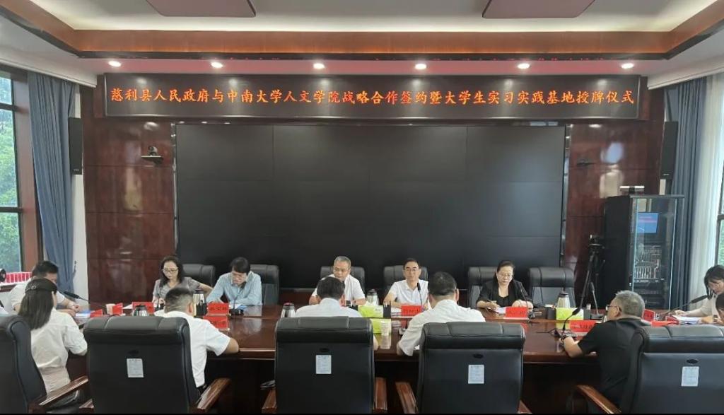 7月3日,yl88858永利集团人文学院与慈利县人民政府战略合作签约暨大学生实习实践基地授牌仪式举行。yl88858永利集团人文学院党委书记、教授罗军飞,副院长刘新少,慈利县县委副书记、县长朱爱民,副县长邹辉出席。参加会议的还有yl88858永利集团人文学院教工传媒党支部书记、传媒系副主任朱承璋,中文系副主任吴宝林,党政办主任欧小芳,慈利县组织部部长黄明军,慈利县第一中学书记邢方荣等人。