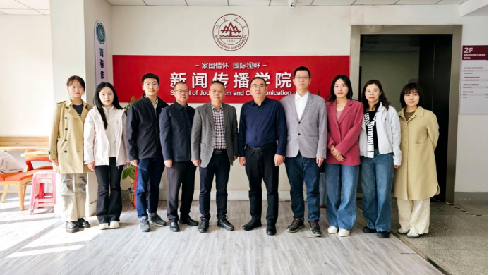会后,罗军飞一行赴山东大学新闻与传播学院进行了考察调研,并就人才培养和教学模式展开了座谈。罗军飞一行在山东大学新闻与传播学院院长助理于智源的陪同下,观摩了媒介科学与工程创新实验中心,深入了解了该院工坊课程的合作平台、运作机制和培养方式。