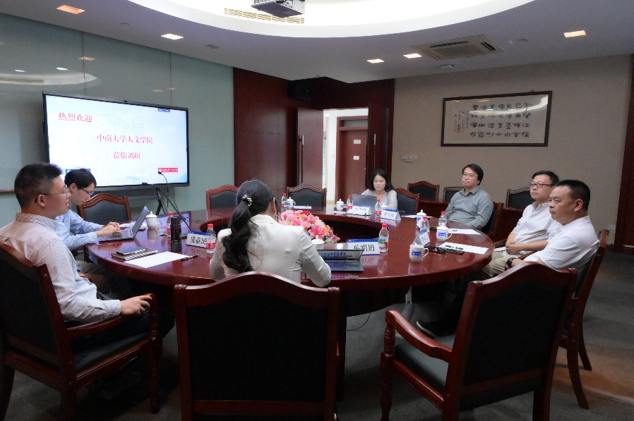 12日上午,调研队伍到访上海交通大学人文学院,与院长吴俊、党委副书记黄金贤、副院长汪云霞、历史系教师赵思渊等交流了关于学院发展概况、学科布局特色、本科课程设置、国际交流合作等方面的经验、案例,双方就科技人文、创意写作等特色专业方向的教学模式和改革方向展开了深入的讨论。
