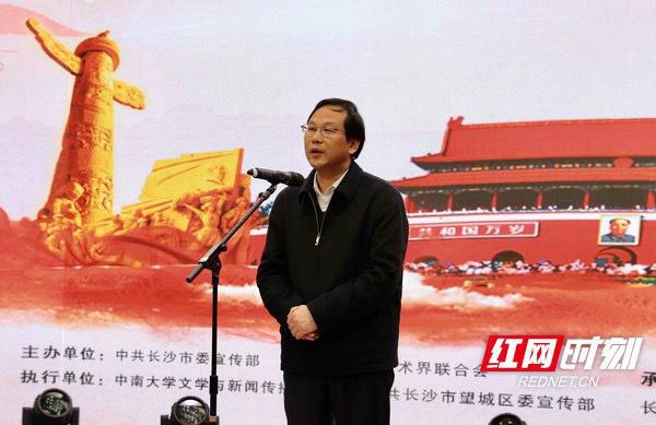 长沙市委常委、宣传部长高山深情寄语在座观众,他说:“英雄,是我们中华民族当中最闪亮的坐标,激励着我们前行的方向。聂茂教授用三十年的时间,用他的心血,凝聚而成的万行长诗——《共和国英雄》。在这之前,它已经打动了很多很多的人,打动了热爱文学的人,打动了青年人,打动了老年人,打动了我们少年人。聂茂教授就是我们这个时代的英雄的讴歌者,他就是英雄。我想我们从今天出发,为了我们民族的伟大复兴,我们这个时代还需要更多的英雄,还需要更多的歌颂英雄的‘聂茂’们。”