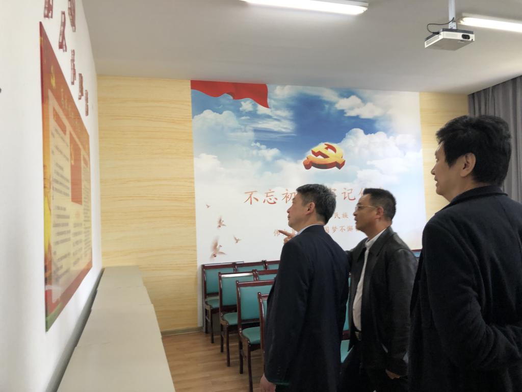 罗书记、白院长等班子成员陪同伍书记一行参观了学院党员活动室、实验室、演播室等场地。