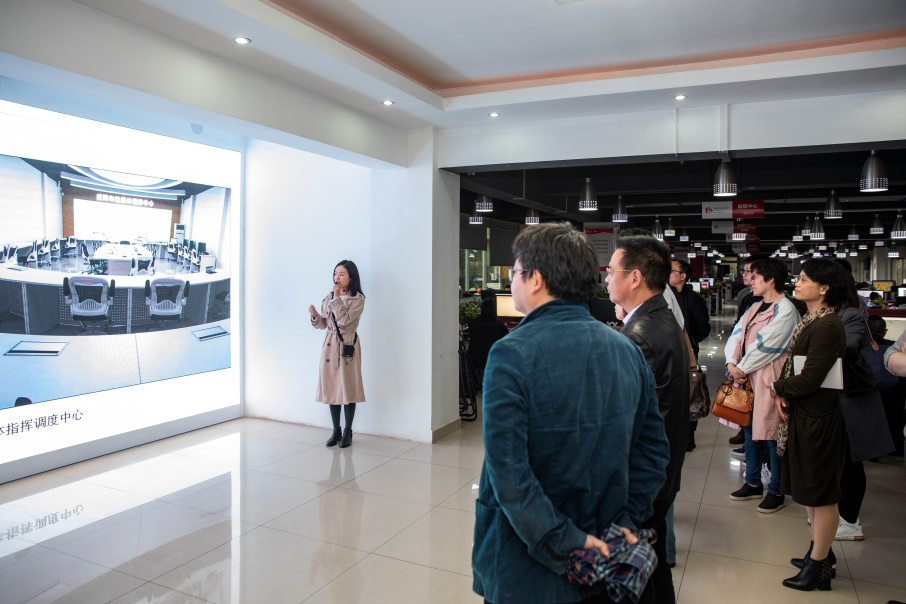 文学与新闻传播学院一行先后参观了红网虚拟演播室、技术中心,详细了解了红网内容生产的流程、审稿制度、传播矩阵,以及红网新媒体集团的县级融媒体云平台系统功能,观看由红网新媒体集团建设的县级融媒体建设示范点宣传片,并听取了融媒体中心情况介绍。
