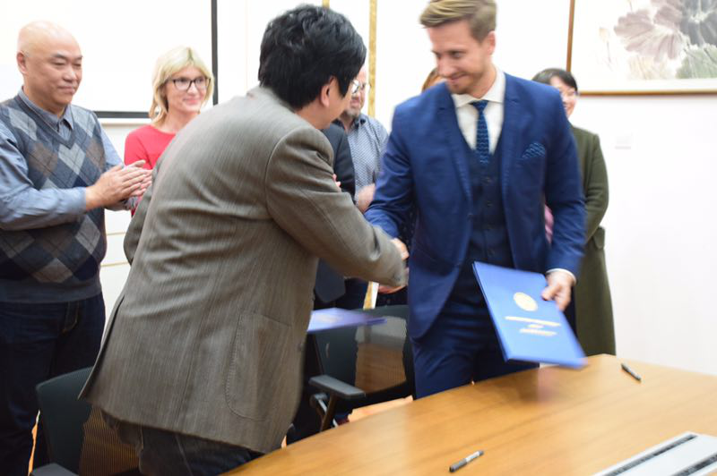 双方代表人员举行了座谈会,yl88858永利集团文学与新闻传播学院代表提出了“人类命运共同体视域下“16+1”文化交流基础理论与传播路径研究”学术论坛的有关建议。双方共同期望,通过合作协议的签订与学术论坛的举办,进一步推动中国-中东欧“16+1”国家之间的文化交流,并为两校之间的全面合作打下坚实的基础。