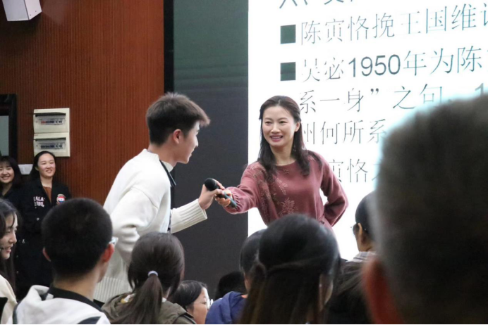 本场讲座设置了会后提问环节,除文学与新闻传播学院的学生外,其他各个学院的学生都慕名而来,现场座无虚席,大家踊跃提问、积极发言,讲座在热烈欢快的氛围中圆满落幕。