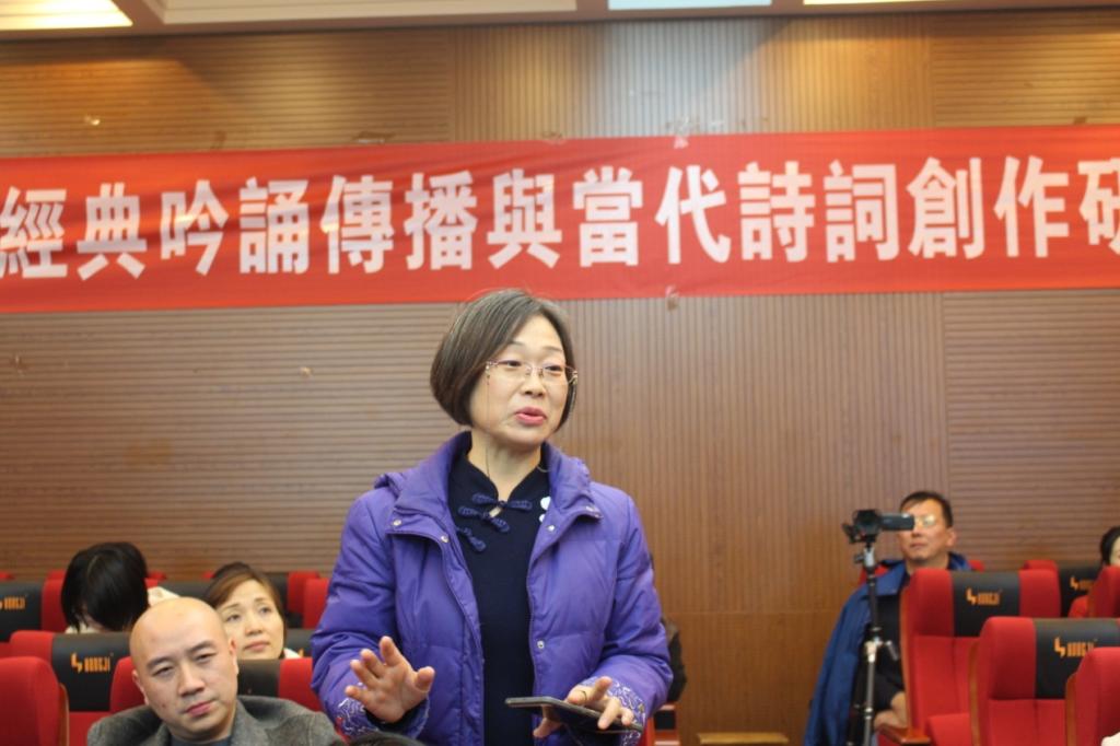 讲座中,参加“两岸经典吟诵传播暨当代诗词创作”高峰论坛的代表听说施老师在讲课,纷纷赶到现场,最后提问环节,大家就诗词吟诵和音乐方面的专业问题进行互动。讲座第二天是“两岸经典吟诵传播暨当代诗词创作”开幕式,结束时大家还意犹未尽。也许施先生讲座只是提出了问题和解决问题的思路,答案在我们的行动中,这正是举办“两岸经典吟诵传播暨当代诗词创作”高峰论坛的意义。