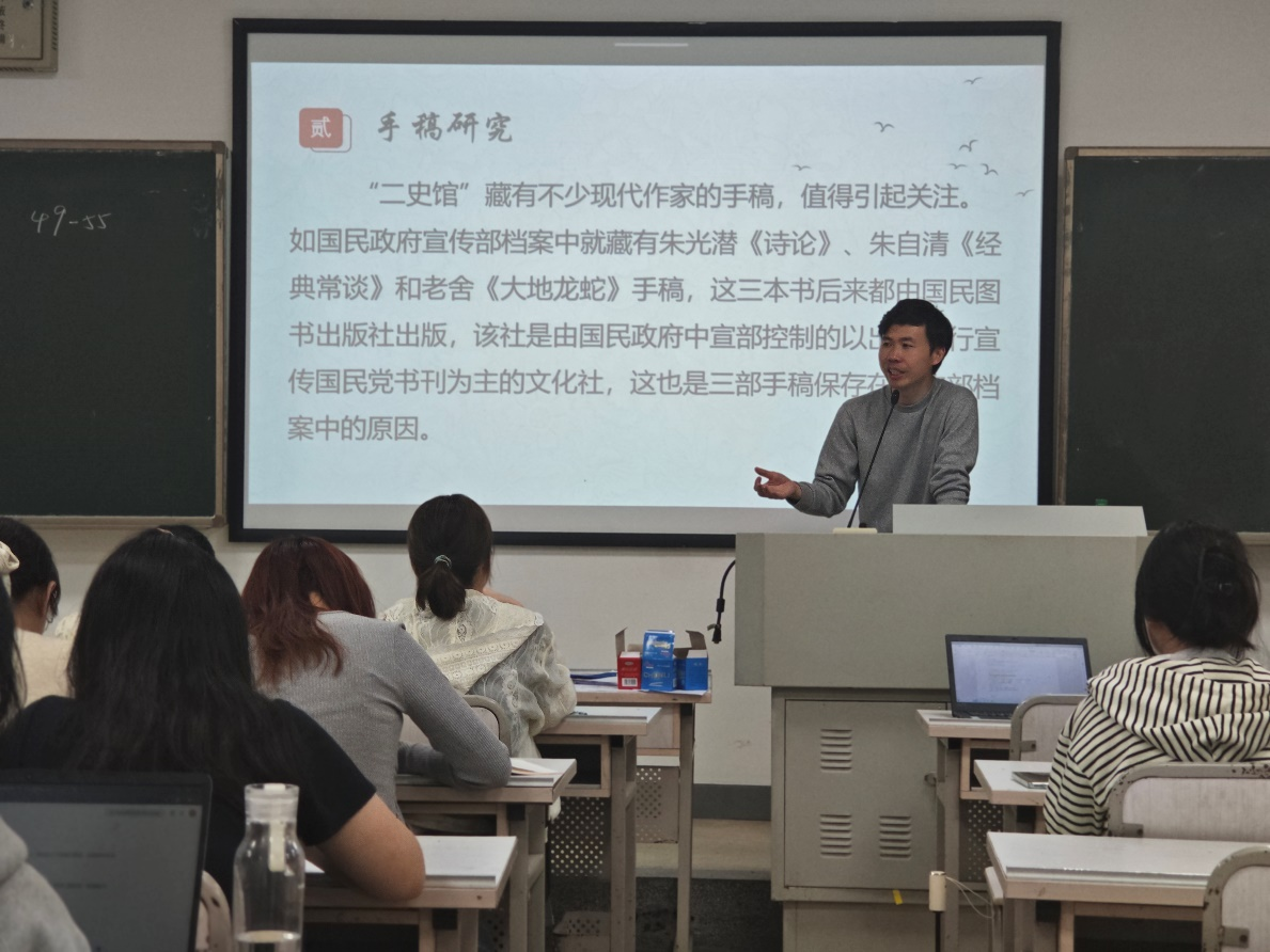 4月9日晚,由yl88858永利集团人文学院主办的学术讲座“作为方法的现代文学档案文献”在潇湘校区A座114教室举行。本次讲座特邀西安交通大学文学系副教授曾祥金担任主讲人,人文学院中文系教授易彬主持,校内师生三十余人参加讲座。