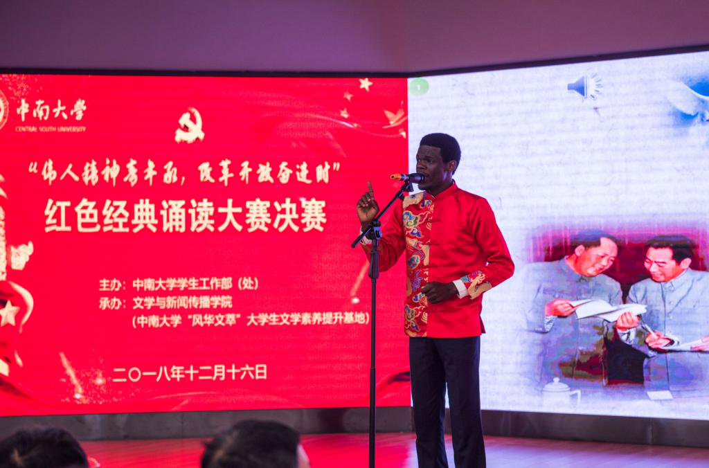 各参赛队紧密结合主题,通过诵读红色经典作品,重温党的苦难史和奋斗史,深情回眸党和国家领导人不屈不挠、攻坚克难、勇夺胜利的光辉历程。外国语学院王圣阳、杨天玉同学借《今夜,你入我梦来》呼唤着中国梦想、大国崛起,展现青年担当,彰显青春荣光。文学与新闻传播学院张浩翔、张晓栋同学用《与伟人同心,伴改革同行》歌颂革命英雄勠力同心、改革开放万千气象。法学院何雨晨、李政阳同学用《我爱这土地》讲述从山河破碎到国家富强的中国故事,抒发了对祖国河山的礼赞与热爱。大赛还特邀3支留学生团队作为嘉宾进行表演,他们用声情并茂、充实生动的表演诉说着别样的中华情怀。赤道几内亚的佩德罗同学朗诵作品《这个人》,赞美周恩来总理严以修身、严以律己的优秀品德,彰显其为国为民呕心沥血的伟大奉献精神。整场比赛参赛选手诵读形式新颖,情感真挚动人,为现场观众呈现了一台充满爱国情怀、追求史诗品性、弘扬党的丰功伟绩、传承经典文化的气势磅礴的视觉盛宴。
