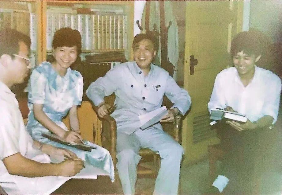 1993年,曾钊新先生与在校研究生讨论问题,自右至左依次是:胡知武、曾钊新、刘喜珍、胡弼成。
